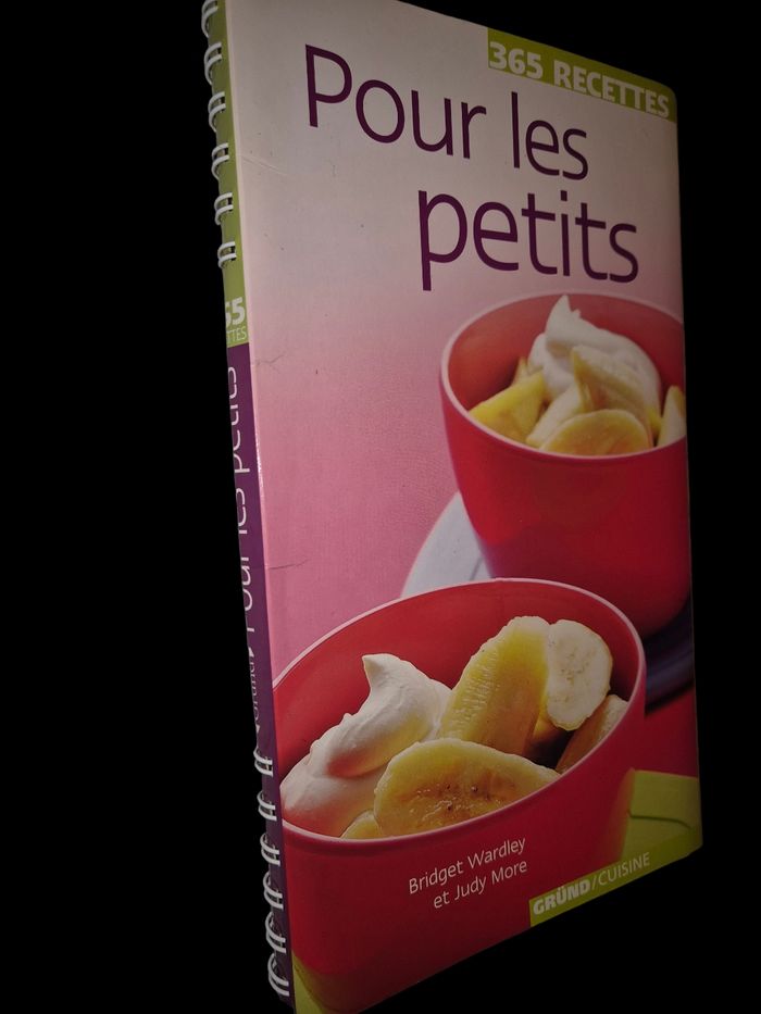 365 Recettes pour les petits Auteures : Bridget Wardley & Judy More Éditions Gründ / Cuisine ISBN : 9782324020216 Format poche broché, 256 pages, photos appétissantes et colorées (purées, compotes, petits plats, desserts simples – tout pour les 6 mois à 3 ans environ !) Un vrai guide complet pour les parents : une recette par jour toute l'année ! Recettes adaptées à chaque âge (dès diversification alimentaire : purées légumes/fruits, compotes, yaourts maison, petits plats équilibrés, finger foods, desserts sains...) Idées rapides, ingrédients simples et de saison, astuces nutrition (vitamines, textures, allergies light) Photos réalistes pour voir le résultat (bananes écrasées avec yaourt, bols colorés, assiettes ludiques) Sections par mois/saison pour varier et suivre la croissance de bébé Parfait pour les mamans/papas qui veulent cuisiner maison sans se prendre la tête, diversifier les menus, ou avoir des idées saines et gourmandes tous les jours. Livre de référence, souvent offert à la naissance ou pour les anniversaires 1-2 ans – coup de cœur pour les familles qui cuisinent pour leurs petits !