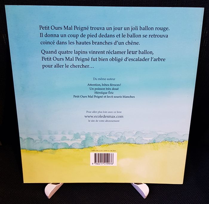 Petit Ours Mal Peigné trouva un jour un joli ballon rouge. Il donna un coup de pied dedans et le ballon se retrouva coincé dans les hautes branches d'un chêne. Quand quatre lapins vinrent réclamer leur ballon, Petit Ours Mal Peigné fut bien obligé d'escalader l'arbre pour aller le chercher... Collection Pastel. Édition souple Format 260x258 EAN 9782211219976 juin-15 Très Bon État, quelques légères pliures sur couvertures et petit problème de pelliculage près angle bas 4ème de couverture, intérieur TBE, sans écritures. Une imposante liste de livres pour enfants disponible, essayez un premier contact ;-) Poids : 200 g