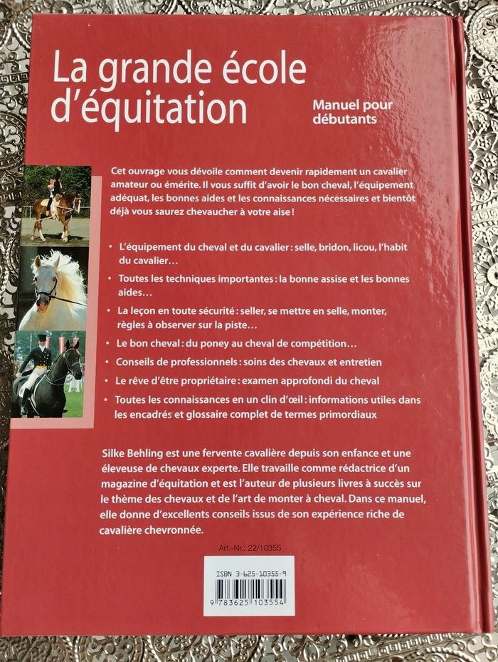 Je vends ce manuel sur la grande école d'équitation, un ouvrage de référence pour les débutants. - Titre : La grande école d'équitation - Auteur : Silke Behling - Éditeur : Naumann & Göbel - Genre : Autre - Condition : Très bon état Très bon état N'hésitez pas à me contacter pour plus d'informations !