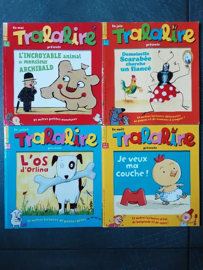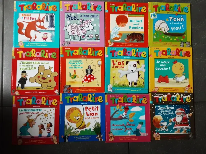 12 livres Tralalire 2-5 ans Du numéro 158 janvier 2014 au numéro 169 décembre 2014 Noté en bon état car lu, les pages peuvent être cornées, les couvertures abîmées