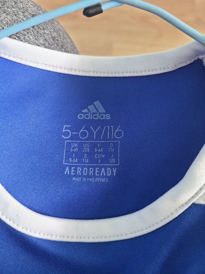 Bonjour vend tee-shirt taille 5-6ans en bon état il a juste le mot Adidas qui commence à s'enlever.