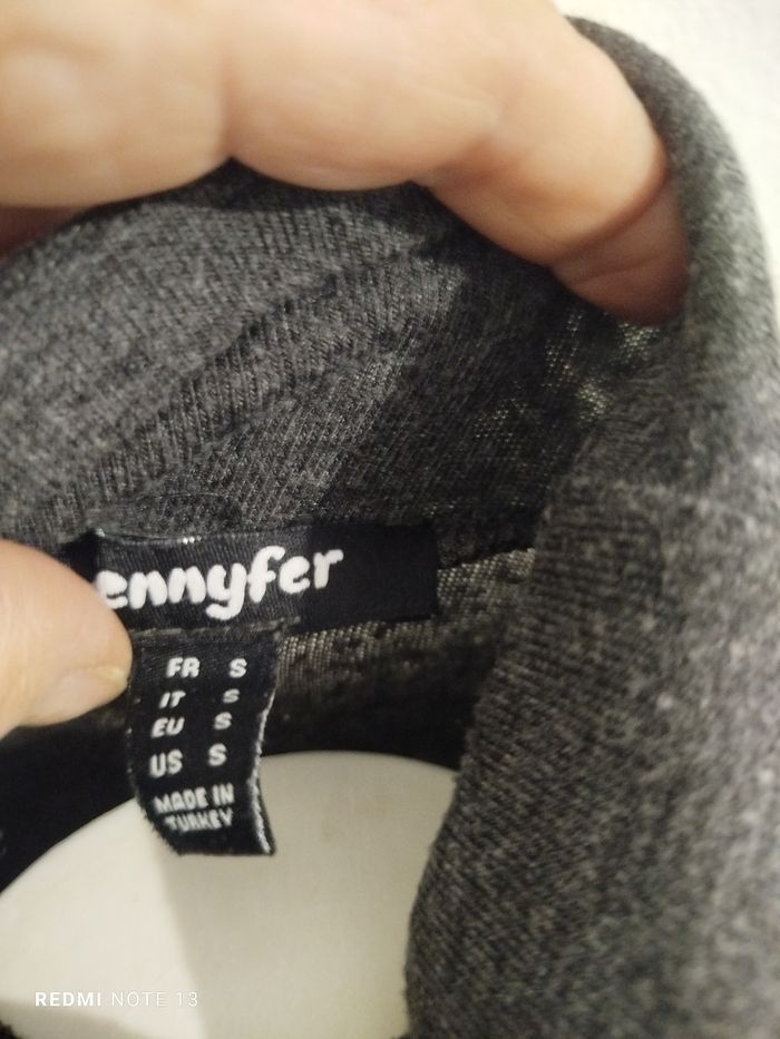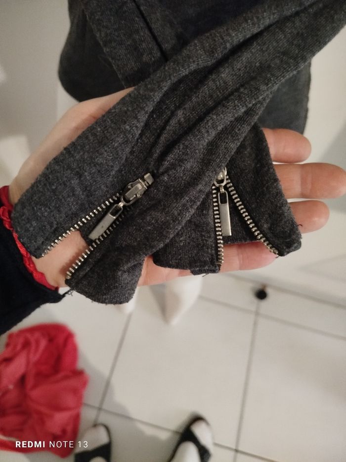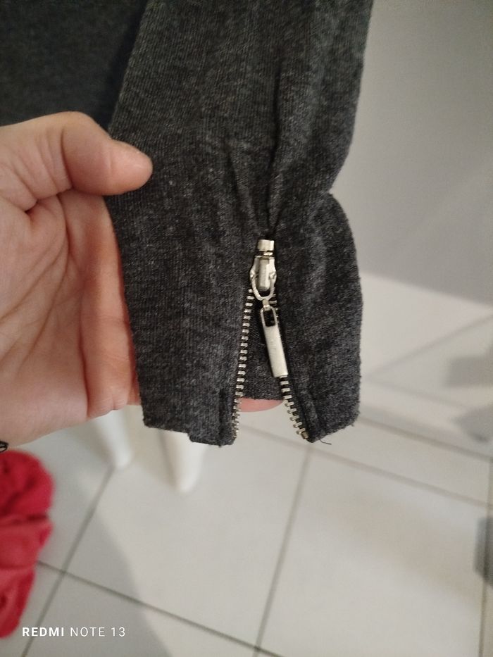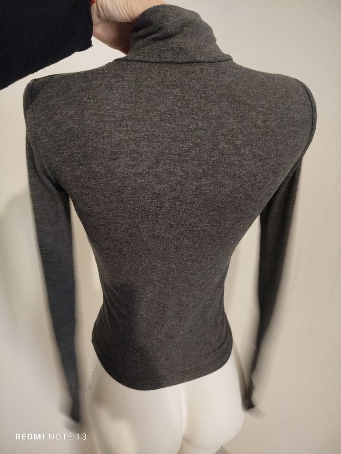 #kytieSfemme. Col roulé léger taille S de marque Jennyfer manches longues avec petite fermeture éclair sur le bas des manches gris anthracite élastique mesure des épaules 34 cm des aisselles 42 cm hauteur 55 cm réf 420