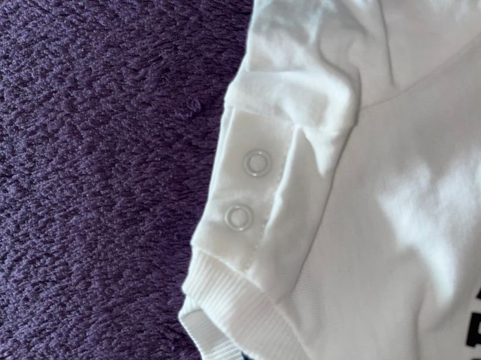 Adorable t-shirt à manches longues bébé garçon KIABI, taille 3 mois (60 cm / 6 kg). Couleur blanc Pratique avec boutons pressions sur le côté. Très bon état. #tshirtbebegarcon #teeshirtbébégarçon #teeshirtbebe