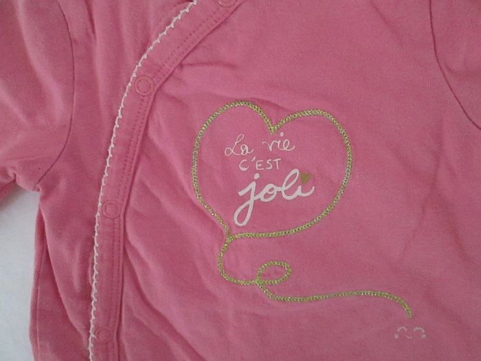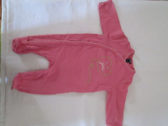 Vends pyjama rose motif doré. 100 % coton. Taille 6 mois. Très bon état. N'hésitez pas à consulter mes autres annonces.