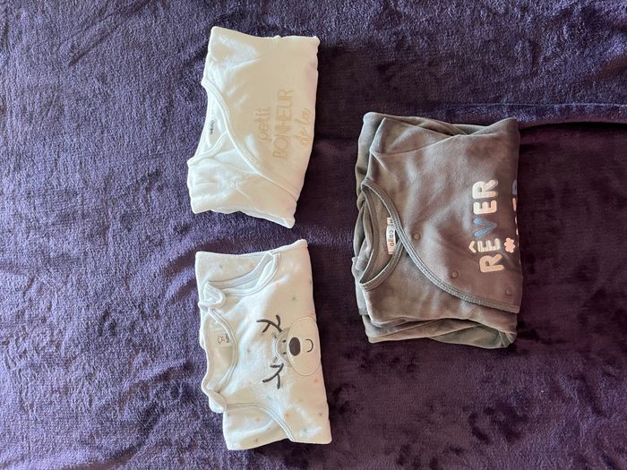 Lot de 3 pyjamas marque GEMO. Bon état. 1 pyjama ouverture entrejambe 2 pyjamas ouverture devant. #pyjamabébé #pyjamabebegarcon #lot3pyjamas