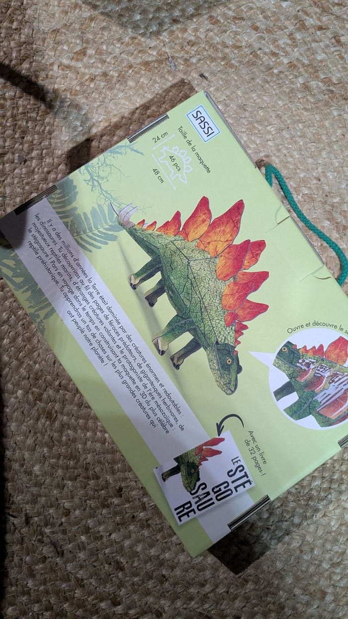 Maquette 3D a construire. Thème stégosaure. Marque sassi junior. 46 pièces pour construire la maquette détaillée d' un stégosaure et un livre jeu qui contient 32 pages illustrées sur le thème des dinosaures. Neuf, jamais ouvert. Cadeau en double.