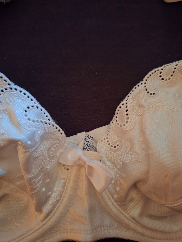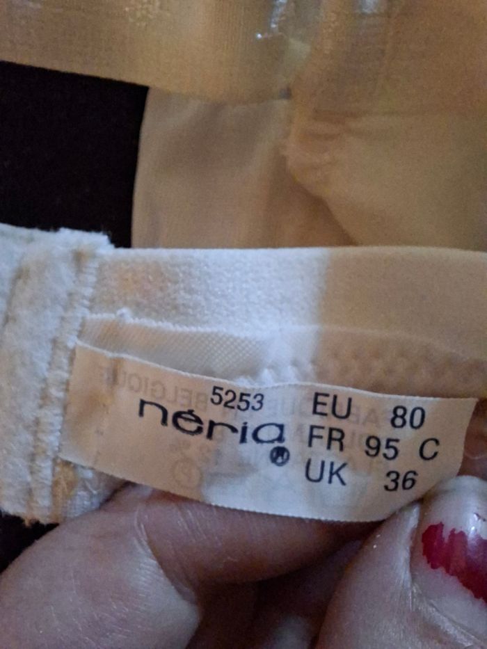 Vends soutien-gorge blanc classique de la marque Néria. ​Taille : FR 95C (EU 80C / UK 36C). ​Détails : Jolies broderies sur le haut des bonnets et petit nœud satiné à l'entre-sein. Armatures pour un bon maintien. ​Fermeture : Double agrafage au dos avec trois positions de réglage. ​Composition : 88% Polyamide, 12% Élasthanne. ​Fabrication : Fabriqué en Belgique. ​État : Bon état