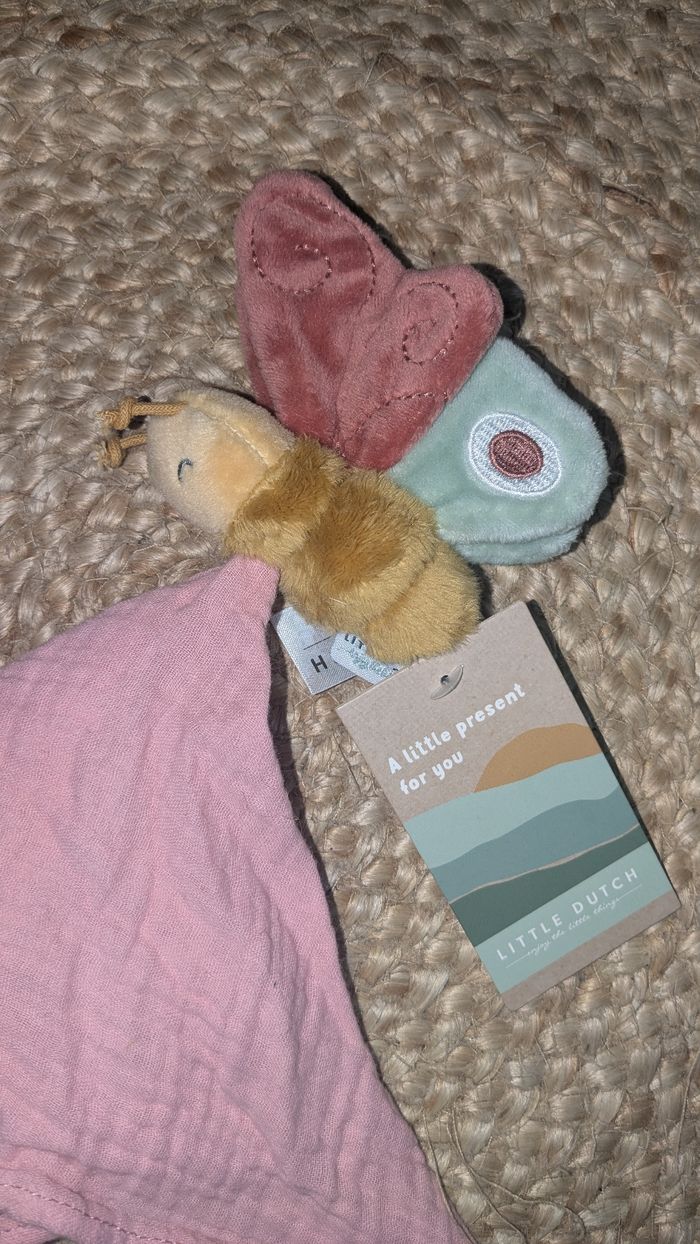 Doudou mouchoir. Marque Little dutch. Collection flowers and butterflies. Lily le papillon, lange rose. Neuf avec étiquette.