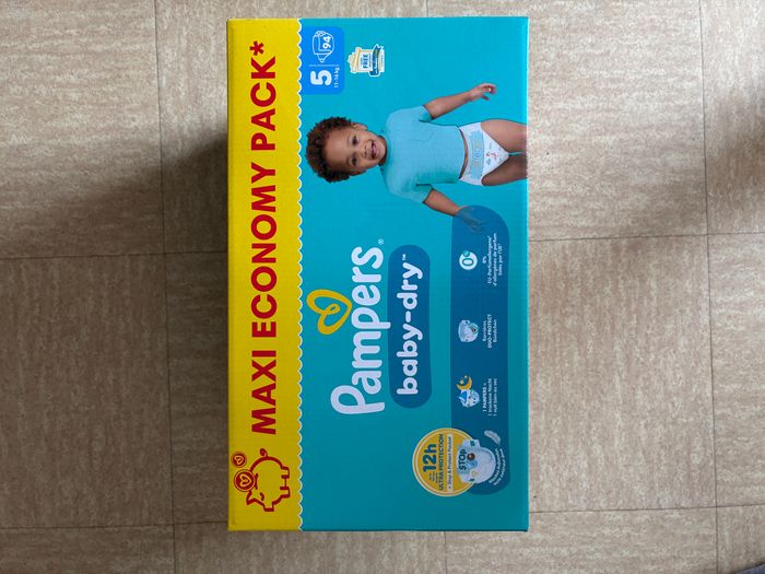 🐥 Pampers 94 couches taille 5 🏋️‍♀️ 11-16 kilos 📦 Maxi Economy Pack 🍼 94 couches #pampers #couches #pack #economy #maxi #baby