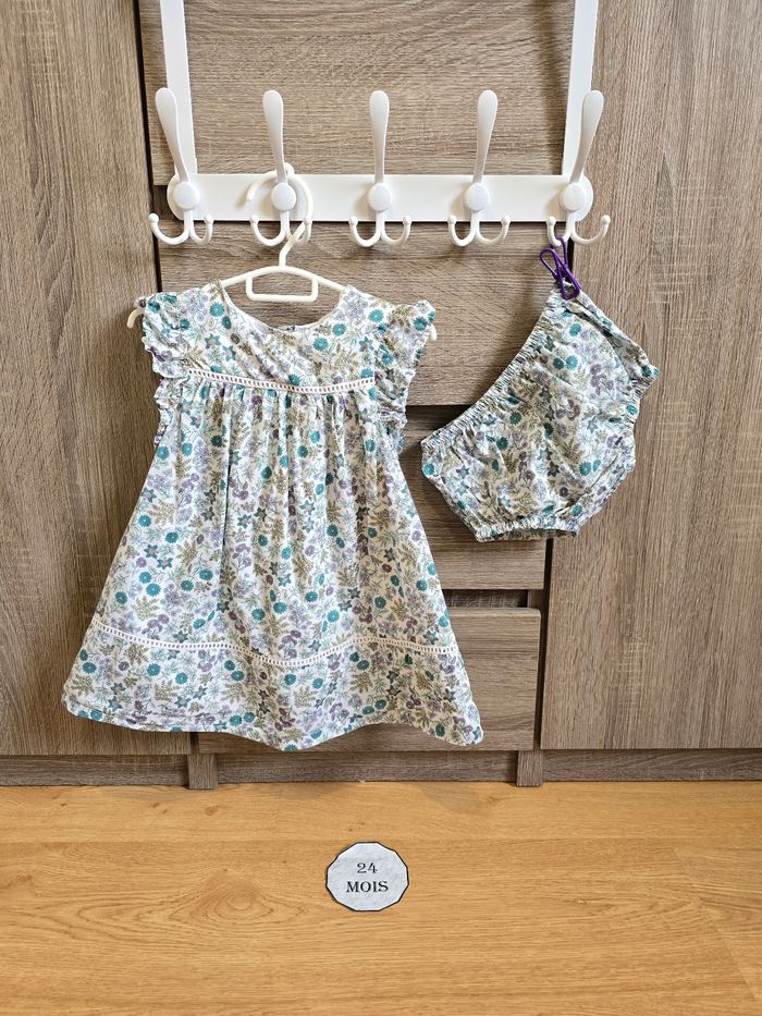 Lien direct vers les tailles équivalentes dans mon dressing : #fdhsarah24mois #fdhsarahSGMJ 📜 Ensemble comprenant : - Robe imprimée fleuri mauve, lilas, vert turquoise et noisette sur fond écru. Détails ajourés sur buste et bas de robe. Accompagnée de son bloomer. Ref : MAPAULINE - Gilet/cardigan ajouré fleurs couleur vert turquoise. Ref : MAPRUNE Collection : Vert de Tilleuil Taille 📏 : 24 mois / 86 cm État 🔍 : Très bon état Marque 🏷️ : Sergent Major Je suis disponible pour toutes questions ou photos supplémentaires. 📦 L’envoi se fait le plus rapidement possible Bon Shopping #fdhxxx24xxx