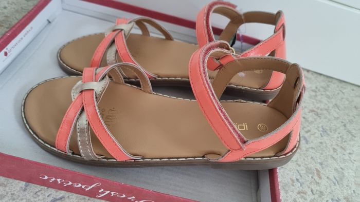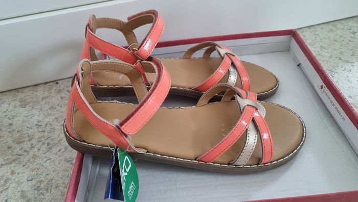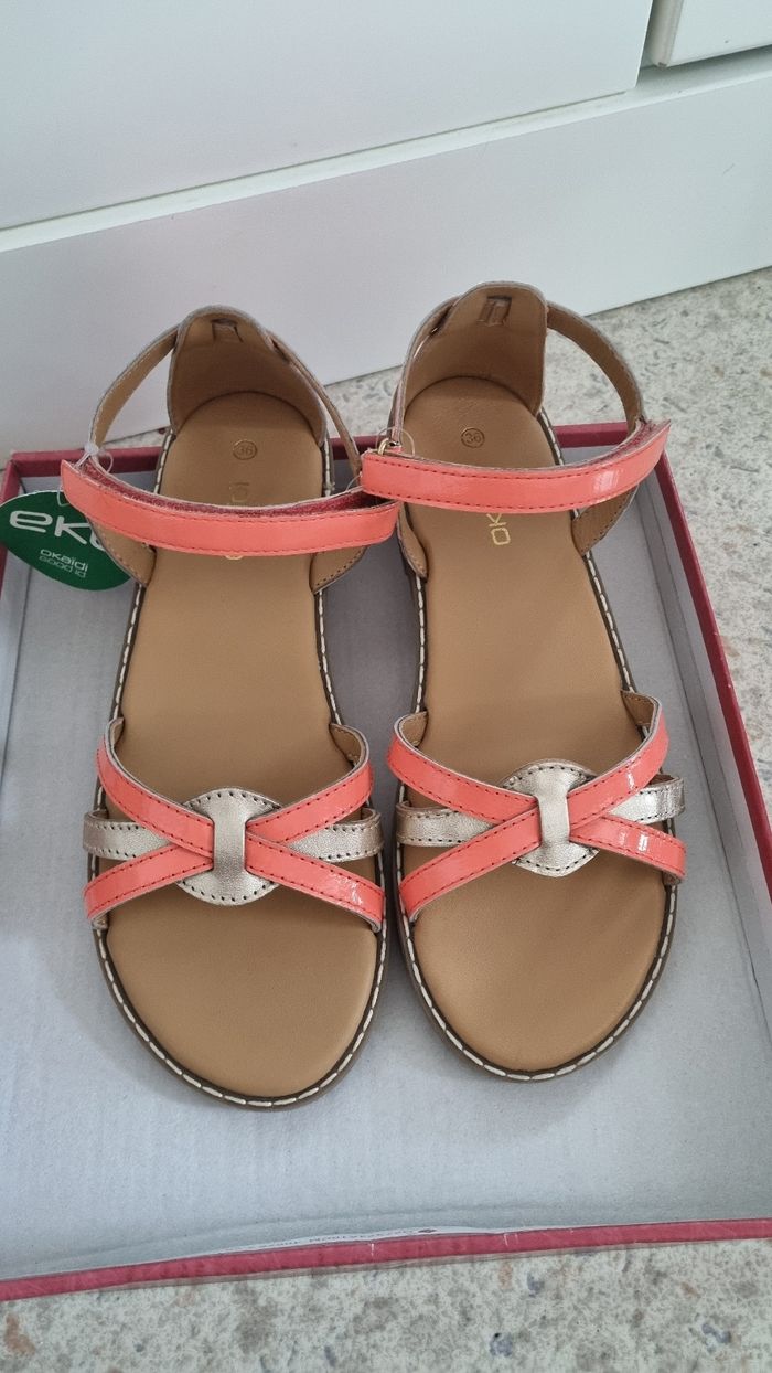 Sandale fille Marque okaïdi Couleur corail vernis et doré Bride cuir Neuve avec étiquette Taille 36