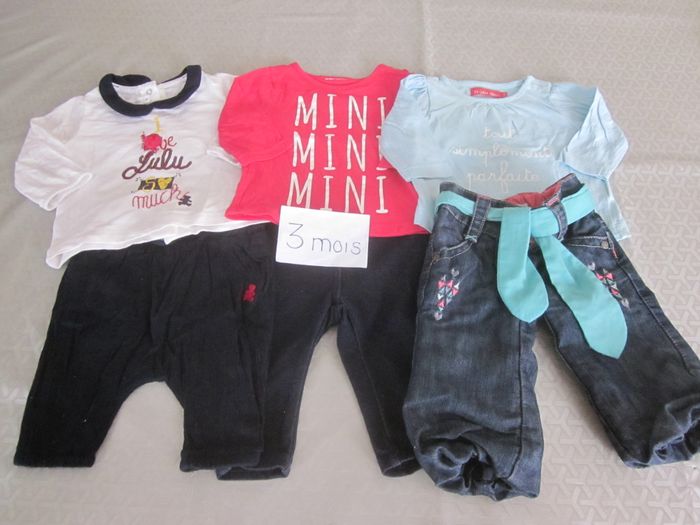 3m, 2 pantalons + 2 hauts ml + ensemble 2 pièces, lulu castagnette, brioche, gemo