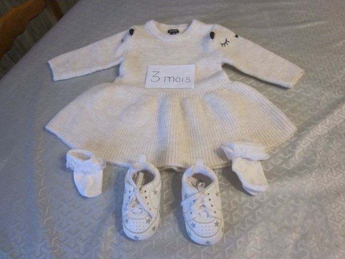 3m, robe tricot, bien chaude + paire chaussures + paire cho7, kiabi