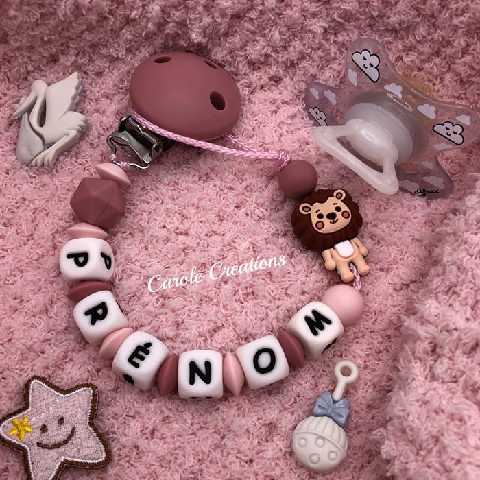 Attache tétine personnalisée fille lion