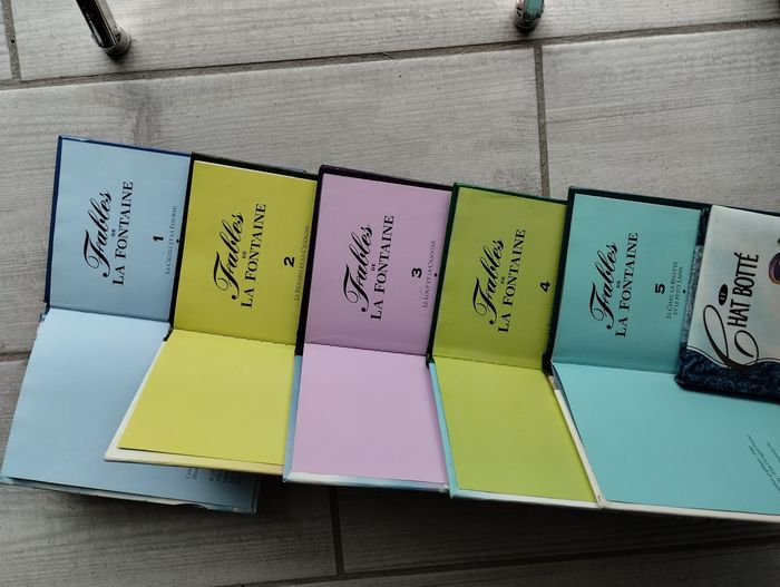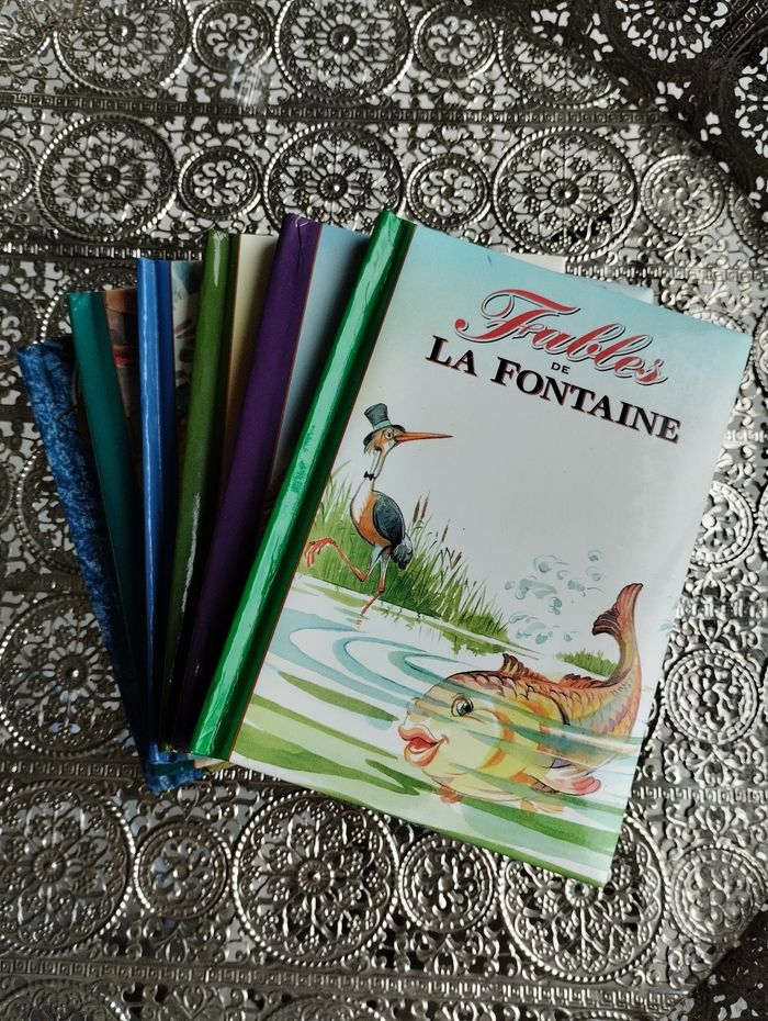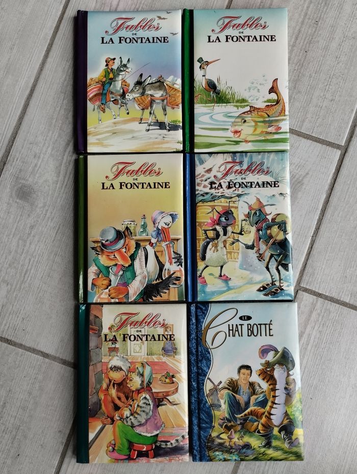 Lot de 6 livres. 5 fables de la fontaine : - la cigale et la fourmi - le renard et la cigogne - le loup et la cigogne - le pot de terre et le pot de fer - le chat la belette et le petit lapin Et dans le même format un compte de Perrault : le chat botté 1€ pièces ou 5€ le lot #livres