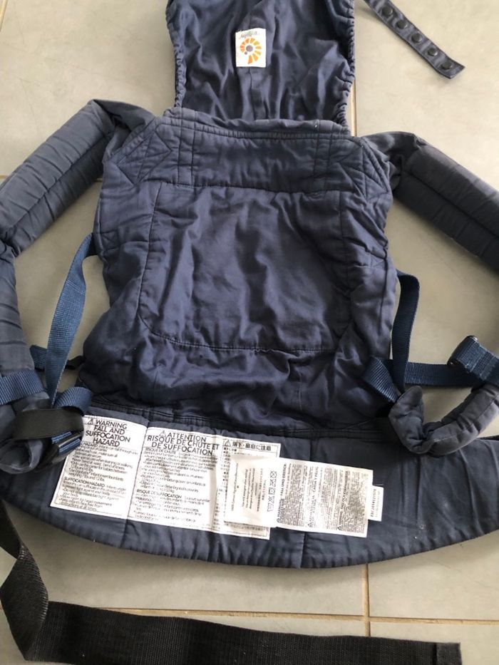 Modèle organic de ergobaby Bleu marine Vendu avec l’adaptateur nouveau-né. Très bon état, très peu servi