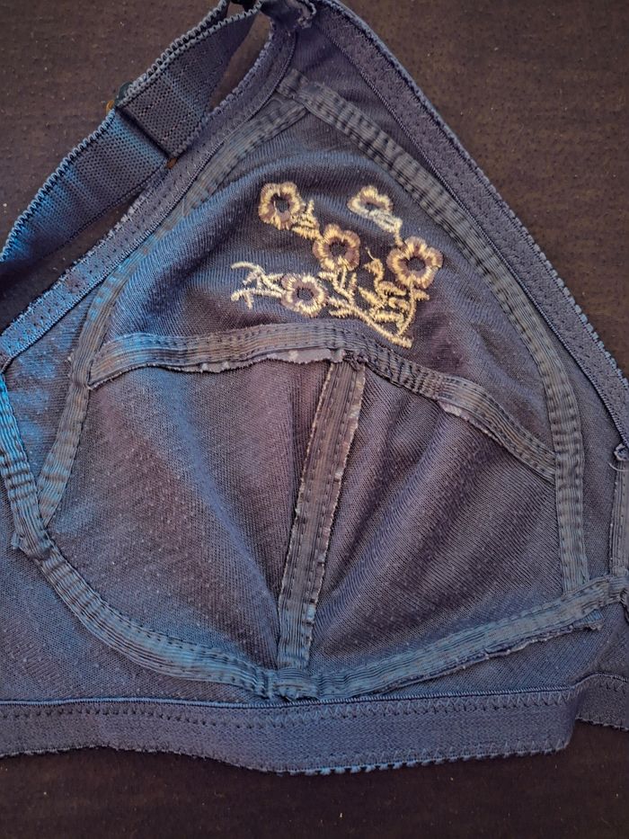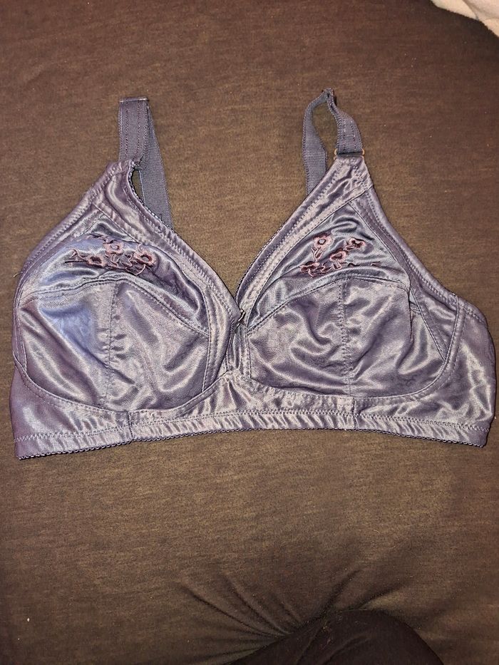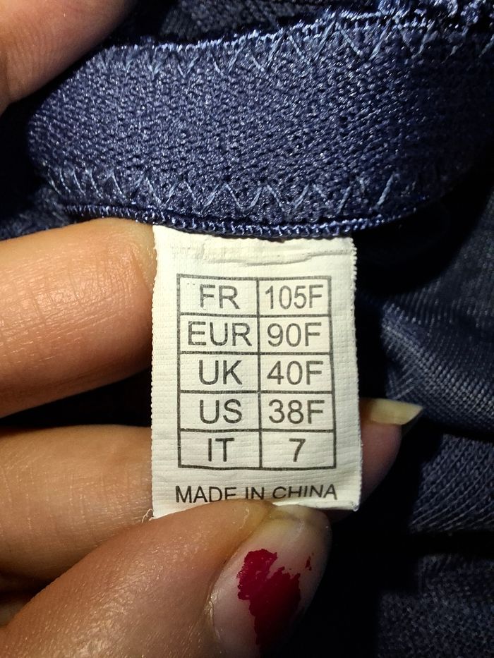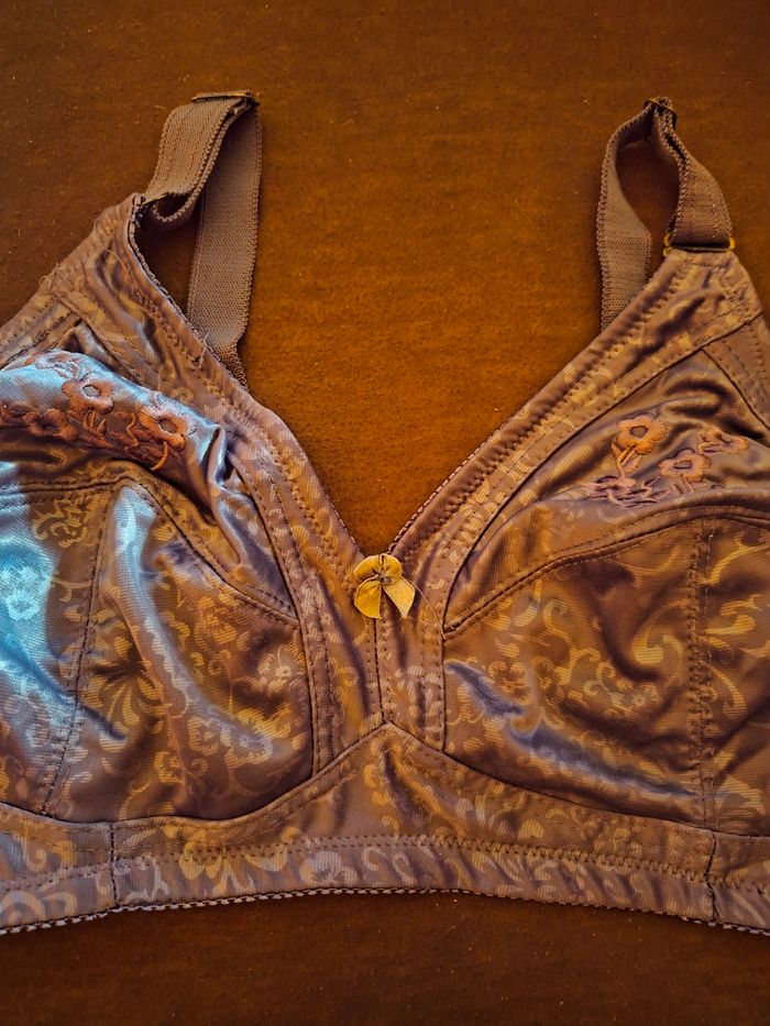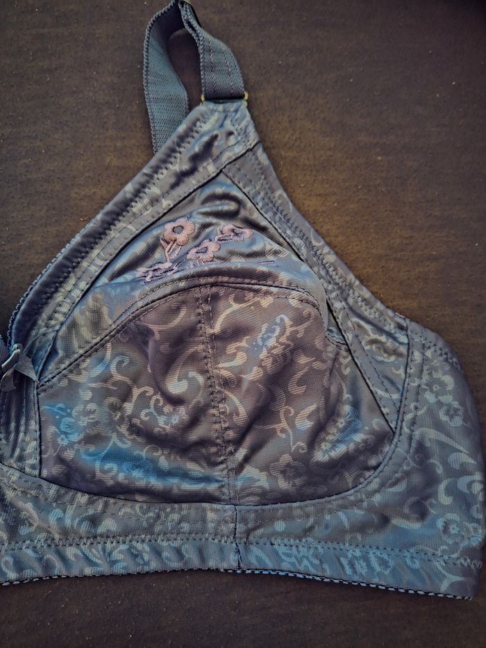 Vends magnifique soutien-gorge sans armatures, alliant confort absolu et élégance. Son coloris bleu acier aux reflets satinés est rehaussé par de délicates broderies florales sur le haut des bonnets et un petit nœud décoratif à l'entre-sein. ​Type : Grand maintien / Emboîtant. ​Détails : Tissu jacquard avec motifs arabesques subtils, bonnets en trois parties pour un galbe naturel. ​Bretelles : Larges et réglables pour un confort optimal sans blesser les épaules. ​Fermeture : Dos large avec triple agrafage (3 crans de réglage) pour une excellente stabilité. ​Composition : 75% Polyamide, 15% Polyester, 10% Élasthanne (matière douce et extensible). ​État : [Précisez l'état ici, ex: Très bon état / Peu porté]. ​📏 Guide des Tailles (indiquées sur l'étiquette) : ​FR : 105F ​EUR : 90F ​UK : 40F ​US : 38F