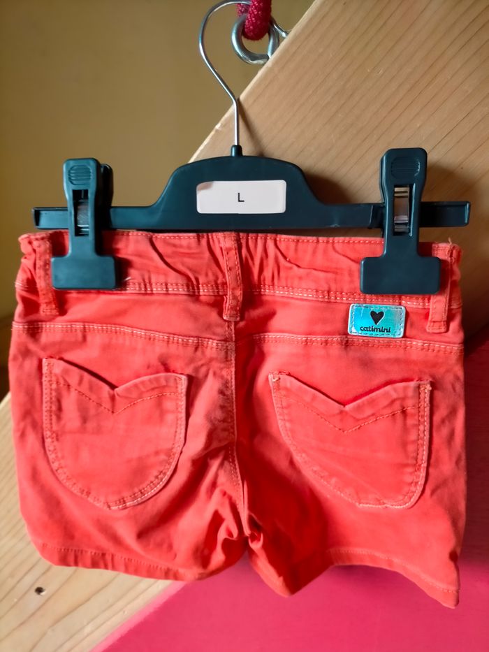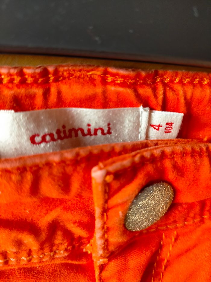 TBE Très joli short à taille ajustable en cotonnade orange. Deux poches latérales devant, deux poches fantaisies plaquées dos et étiquette catimini au dos