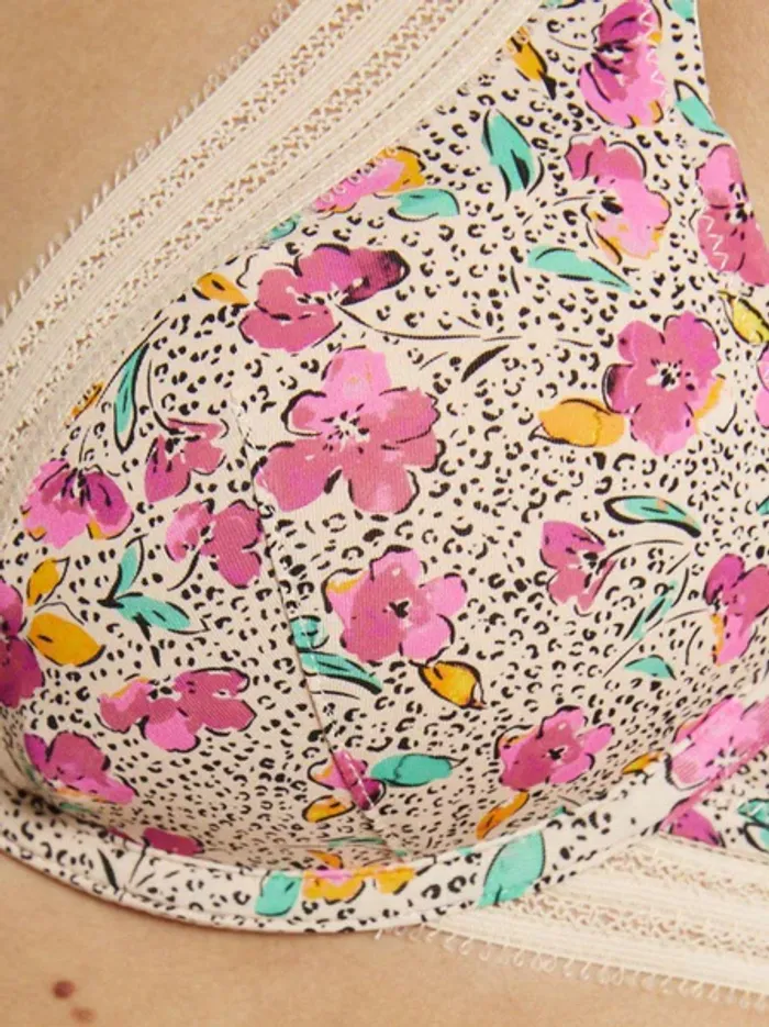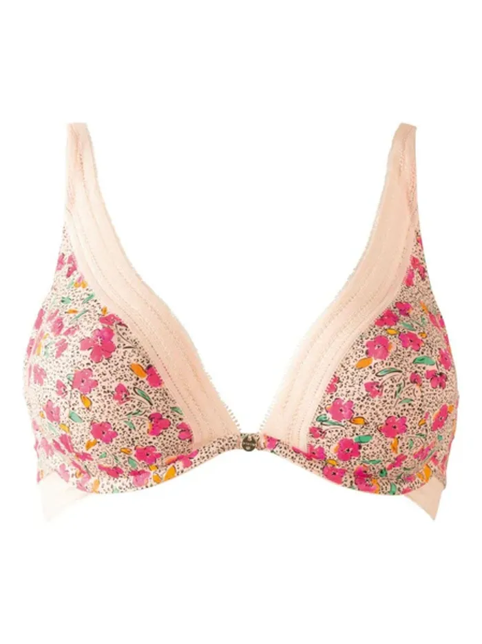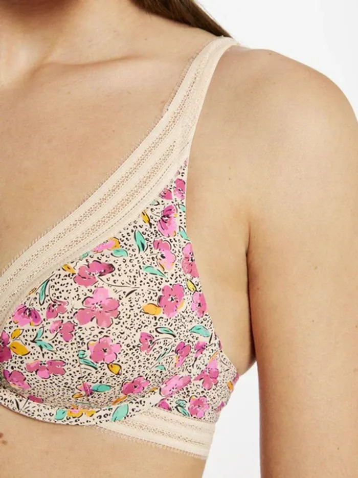 Soutien gorge coques mono-armaturé. Microfibre imprimée au motif mix & match fleurs et mini peau de bête. Décolleté classique. Elastique fantaisie. Médaille logotée MORGAN à l'entre-bonnets. Fermeture dos : 2 agrafes, 3 positions. Matière principale : 92% polyamide 8% elasthanne. doublure bonnet : 100% polyester. bande élastique : 84% polyamide 16% elasthanne.
