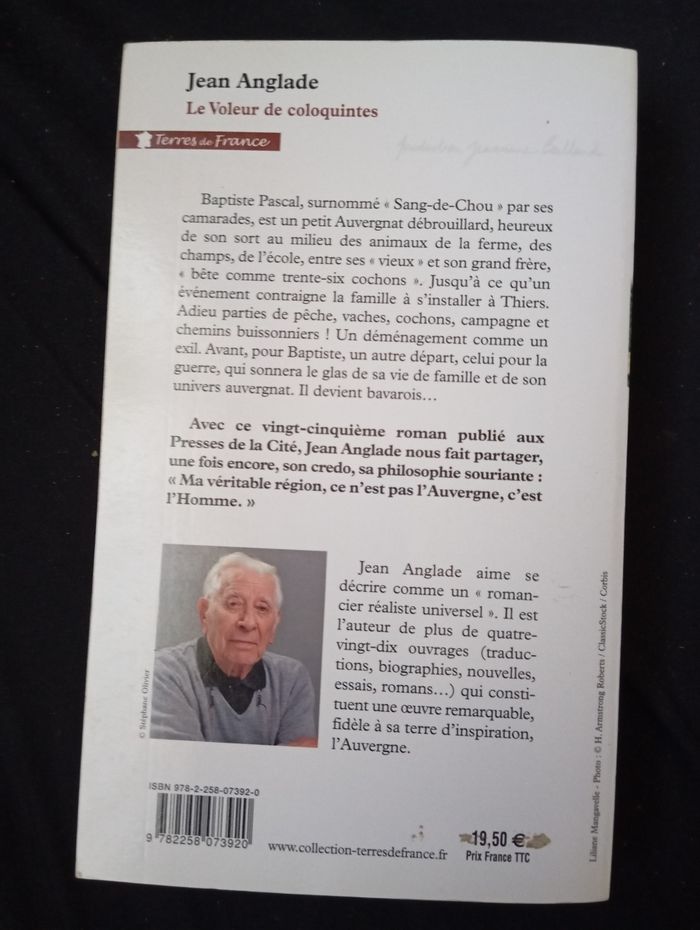Je vends ce roman "Le Voleur de coloquintes" de l'auteur Jean Anglade. - Titre : Le Voleur de coloquintes - Auteur : Jean Anglade - Genre : Roman - Éditeur : Terres de France Bon état N'hésitez pas à me contacter pour plus d'informations !