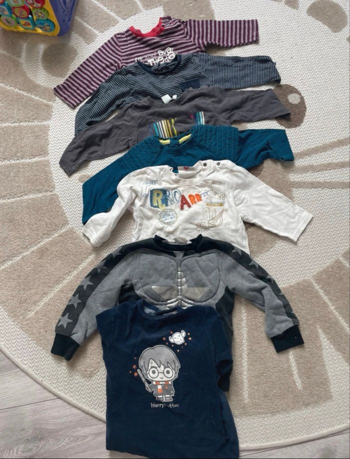 Lot 5 t-shirt manche longue/1 pull et un pyjama 18 mois
