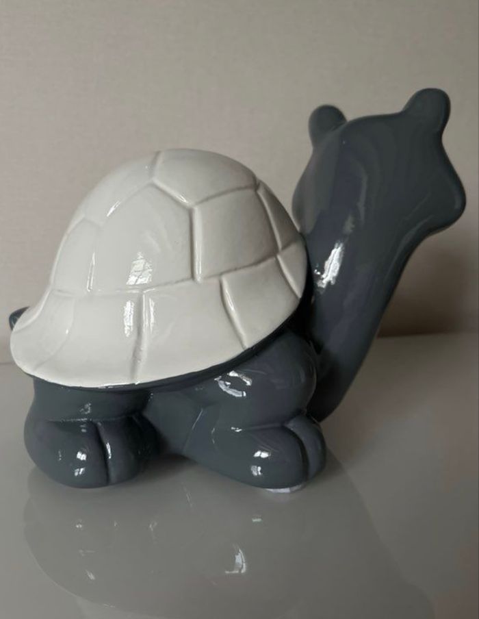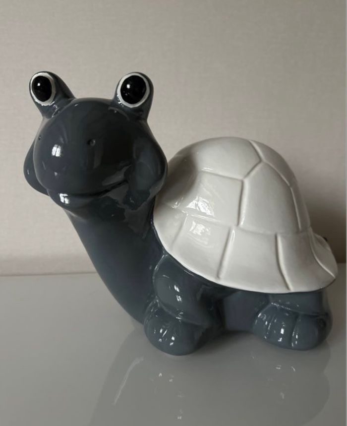Tortue en résine polyester résistante à la pluie et au gel, laquage et vernis UV haute résistance, idéale pour la décoration intérieur et extérieur. Couleur : anthracite et blanche Dimension : 28 x 24 cm Comme neuve : acheté pour déco intérieur Prix neuve : 124 euros