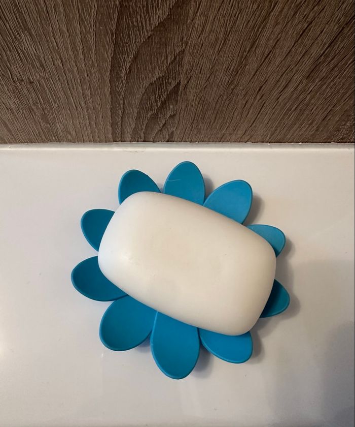 Porte savon turquoise diamètre 12 cm Pot brosse à dents turquoise Hauteur : 11 cm Diamètre : 7 cm Comme neuf