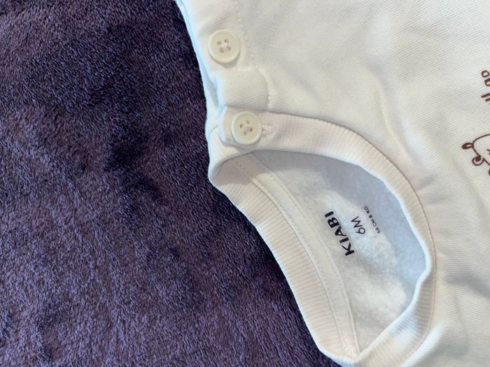 Sweat marque Kiabi taille 6 mois. Boutons sur l'épaule gauche. #sweat #sweatbebegarcon #sweatbebegarcon6mois #sweatkiabi #sweatkiabigarcon #kiabibébégarçon #kiabibebegarcon6mois