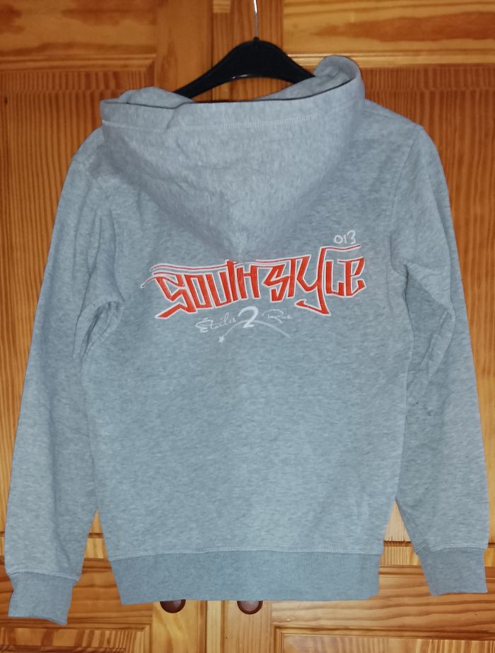 Sweat à fermeture éclair, SOUTH STYLE, gris chiné, capuche, 2 poches latérales, 10/12 ans