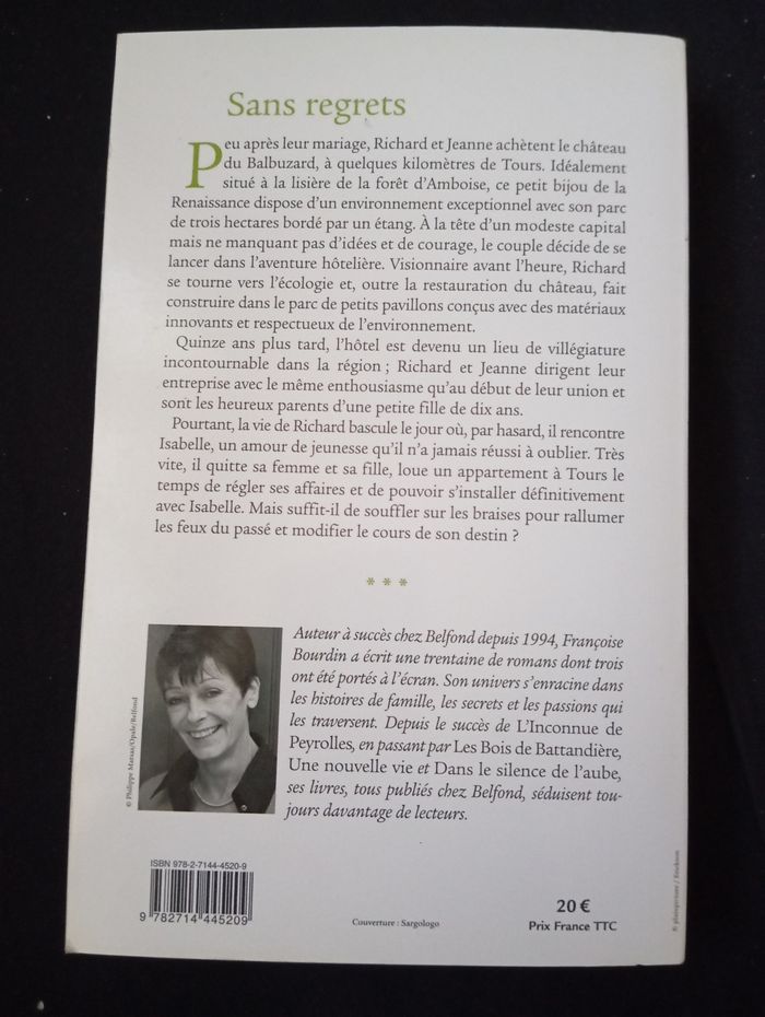 Je vends ce roman "Sans regrets" de Françoise Bourdin. - Titre : Sans regrets - Auteur : Françoise Bourdin - Genre : Roman - Éditeur : Belfond - Année d'édition : Inconnue Bon état N'hésitez pas à me contacter pour plus d'informations !