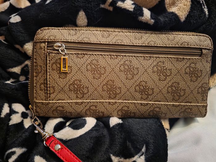 Jolie pochette hologramme Guess marron très pratique porte monnaie porte carte