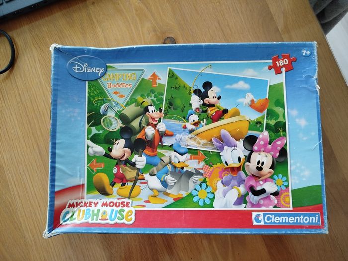Puzzle de 180 pièces sur le thème de Mickey. Puzzle complet, quelques pièces abîmées. Marque Clementoni. Réduction activée sur les lots. #enfant #puzzle #mickey #mickeymouse #mickeymouseclubhouse #disney #clementoni