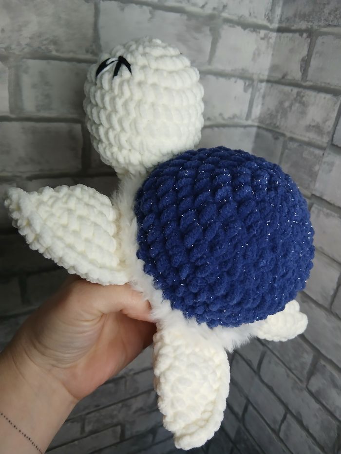 🧸 Peluche artisanale – tortue crocheté à la main 🧶 Craquez pour ce adorable tortue en crochet, entièrement fait main avec un fil tout doux. Avec sa jolie couleur bleu pailleté, blanc, parfait pour offrir ou se faire plaisir 💚 ✨ Détails : Réalisé à la main avec soin Fil doux et agréable au toucher Yeux de sécurité Idéal pour enfant, (sous surveillance) ou décoration Pièce unique / fabrication artisanale 🎁 Parfait comme cadeau de naissance, d’anniversaire ou comme doudou original. 📏 Taille : environ 27cm 🧼 Entretien : lavage à la main conseillé 👉 N’hésitez pas à me contacter pour plus d’information