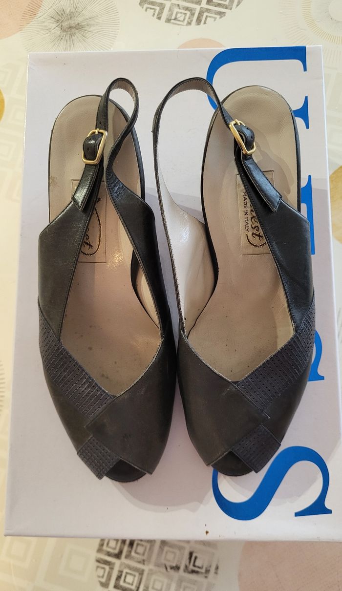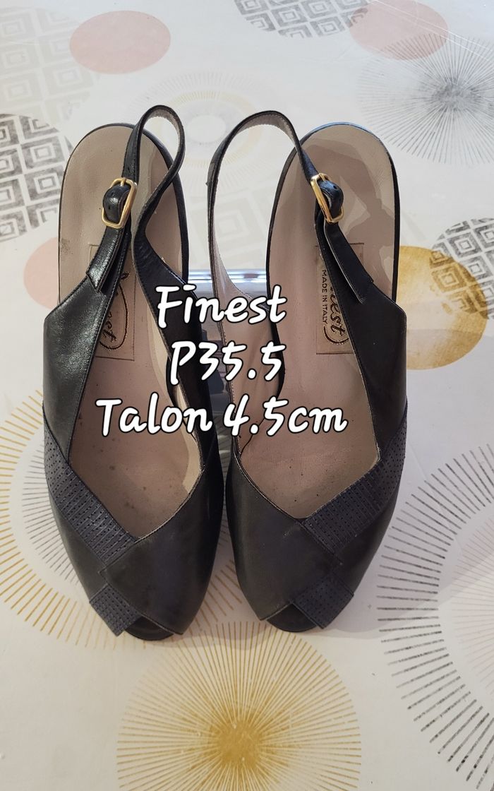 Finest Escarpins/Sandales Eté- Pointure 35.5 & Talon 4.5cm-Marine-100%cuir-Made in Italy en TBE - photo numéro 1