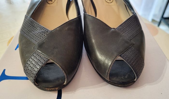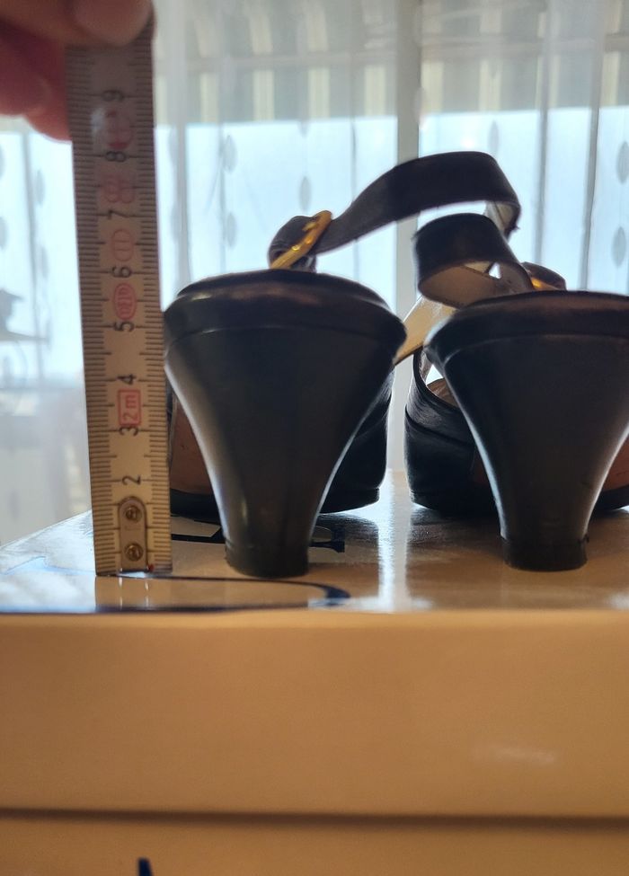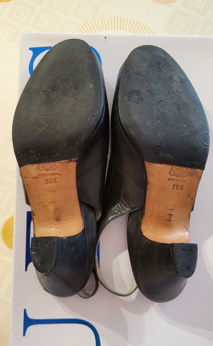 Finest Escarpins/Sandales Eté- Pointure 35.5 & Talon 4.5cm-Marine-100%cuir-Made in Italy en TBE - photo numéro 7