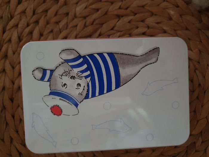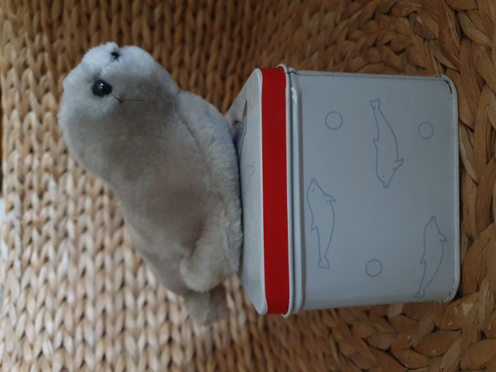 Rare Peluche phoque H 9 cm avec sa boite métal VertBaudet vintage - photo numéro 1