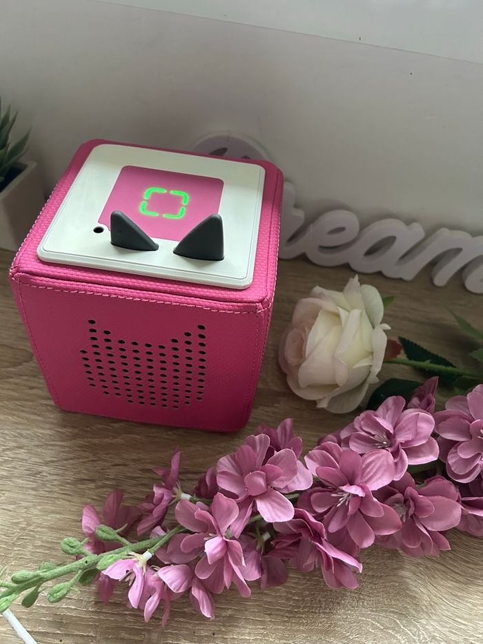 Tonie box 1 vendu sans boîte et sans créatif qu’avec le chargeur. Légères traces sur le dessus du à l’autocollant coller dessus ainsi qu’un petit « poc » voir photos. Fonctionne correctement la batterie a un peu moins « d’autonomie » qu’avant pour moi. Article sera filmer avant et pendant l’envoi pour éviter toutes arnaques et litige.