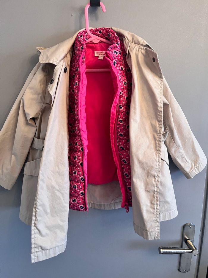 Imperméable beige 2 en 1 avec gilet sans manche rose amovible Taille 4 ans Marque : Du pareil au même