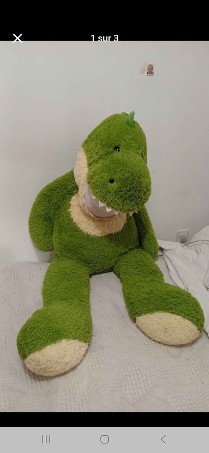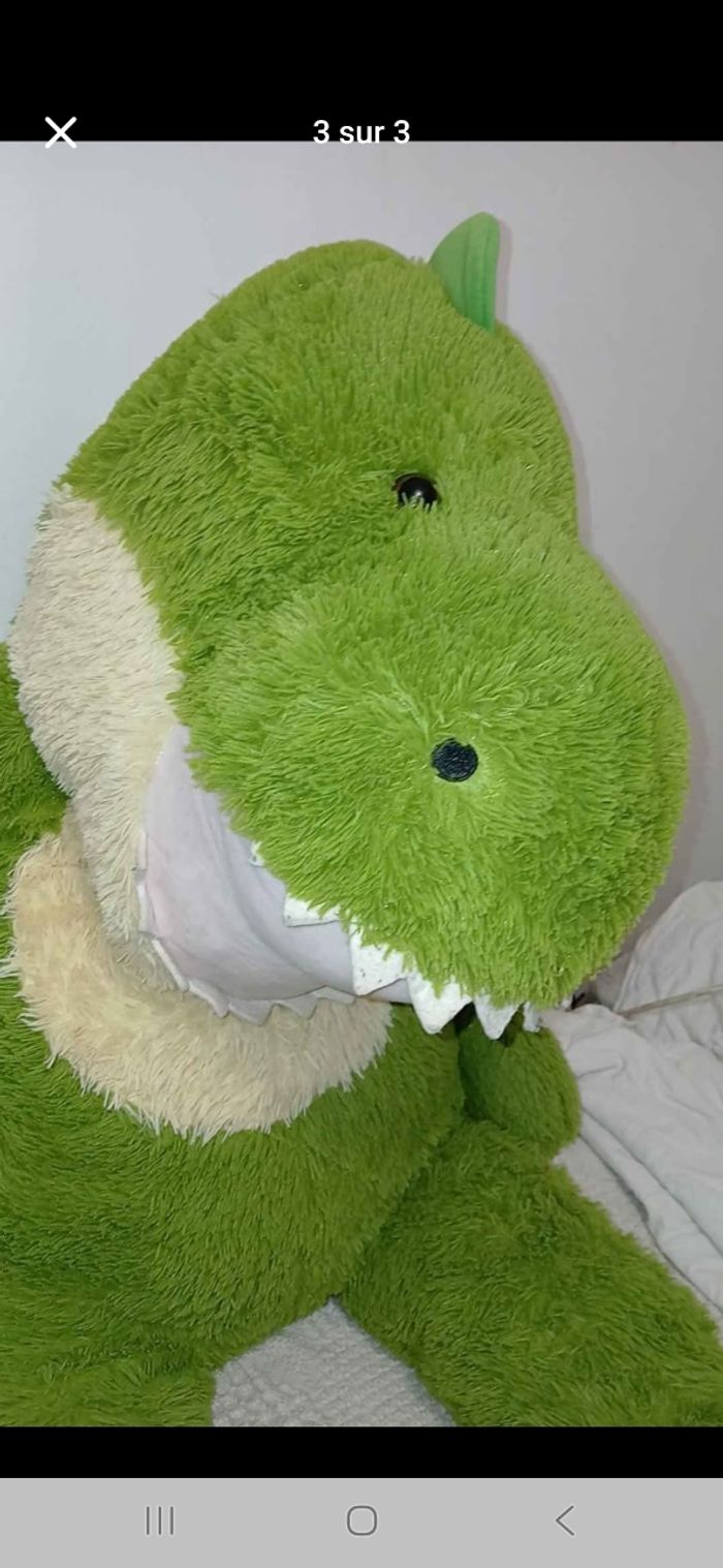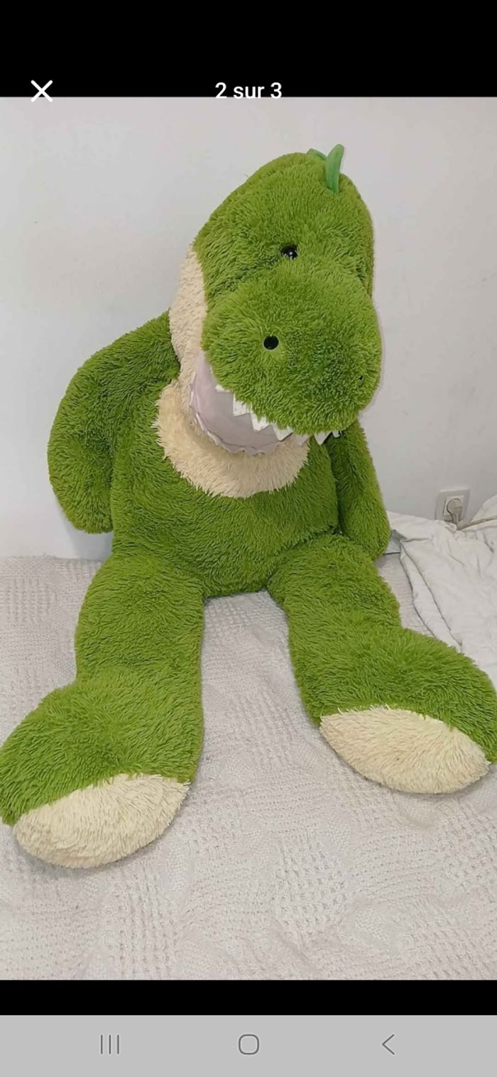 Vend géante peluche dinosaure en bonne état toujours bien entretenu Longueur: 126cm Largeur: 44cm