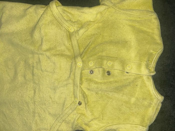 Pyjama bébé tout doux avec pieds Couleur jaune Motif ourson avec inscription « Little bear » Ouverture à l’arrière par pression Taille : 9 mois / 69-72 cm / 9kg Mixte : peut convenir à une petite fille ou à un petit garçon