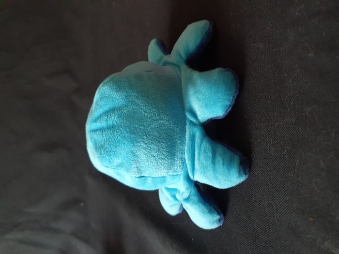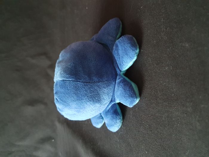 Peluche pieuvre réversible bleu foncé et bleu clair Hauteur : 8,5 cm Diamètre avec les pattes : 18 cm Poids : 48 grammes Très bon état