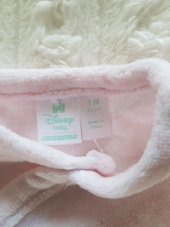 Pyjama fille velours stitch 1 mois 54 cm Ouverture devant Blanc effet moucheté rose pâle