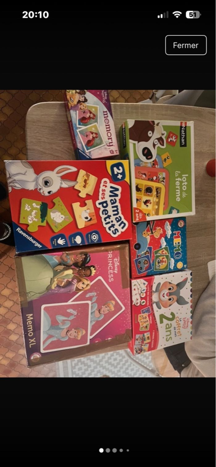 Lots de 6 jeux de société Le jeu des princesse la boîte et super abîmé mais les carte en rien Et la boîte du loto mais pas le jeu à l’intérieur