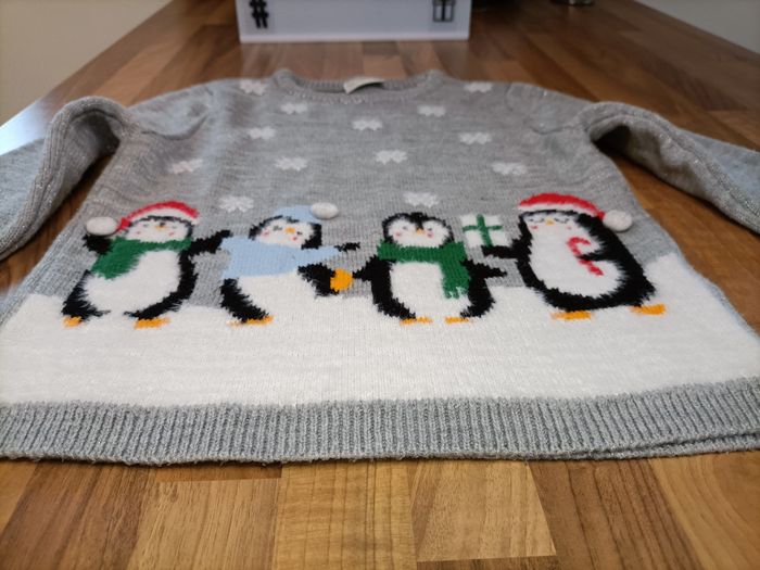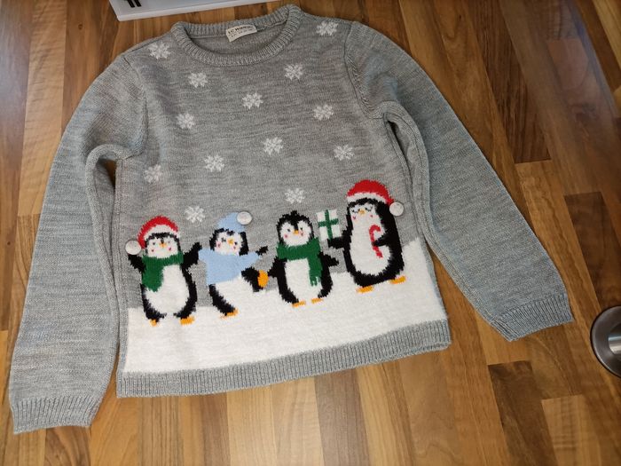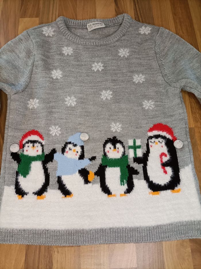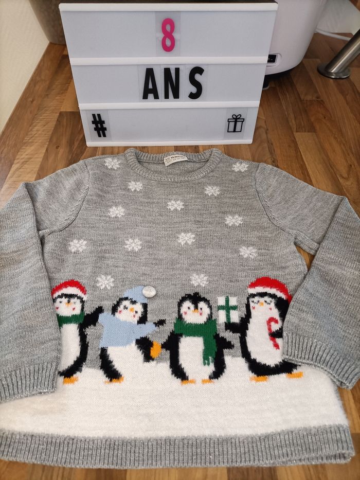 Pull chaud Noël gris pailleté pingouins 8 ans - photo numéro 1