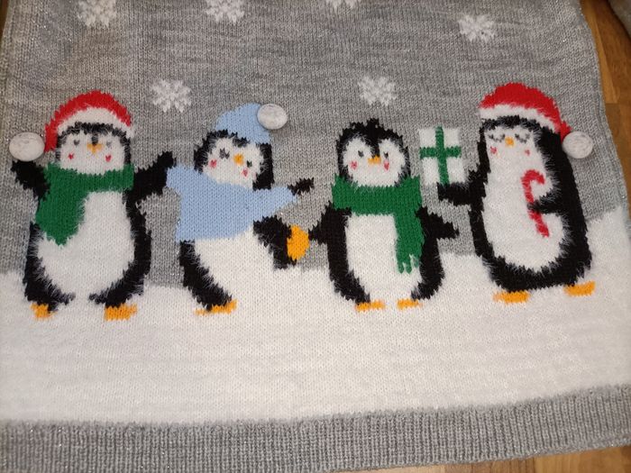 Pull chaud Noël gris pailleté pingouins 8 ans - photo numéro 10
