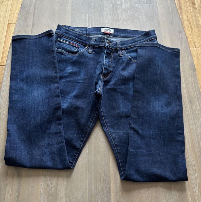 Jean Tommy, bleu foncé. Très bon état, peu porté. Taille 32 X 32. Poches devant et derrière. Modèle slim. N'hésitez pas à faire des lots 😉