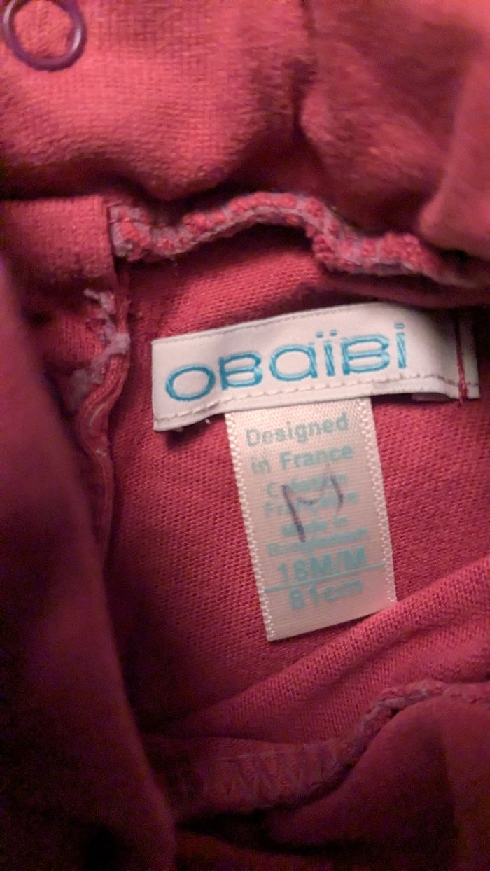 Tee shirt manches longues, épais avec un petit col de la marque Obaibi. Taille 18 mois (81cm) Couleur violet Très bon état, envoi rapide