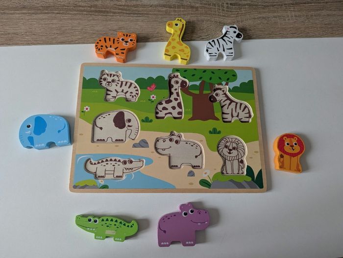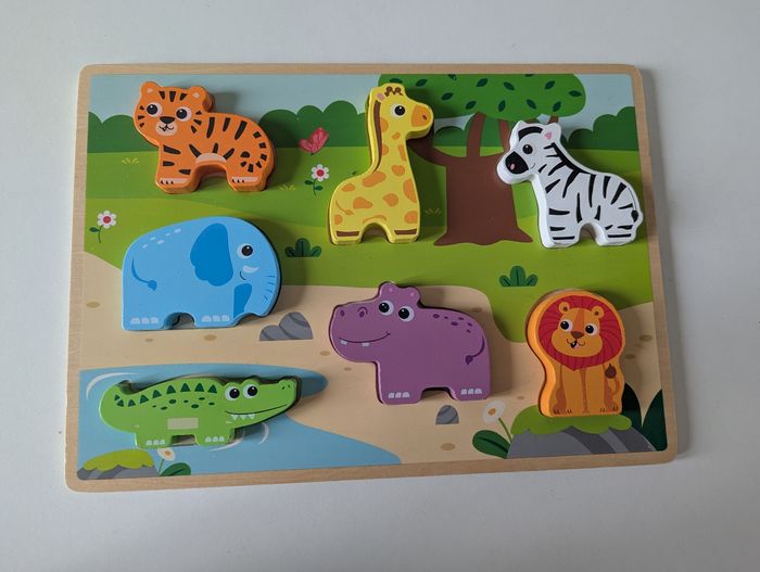 Lot de 2 puzzles Thème animaux sauvages et véhicules Certaines pièces du puzzle véhicule sont un peu abîmées mais aucun problème pour faire le puzzle Envoi rapide et soigné