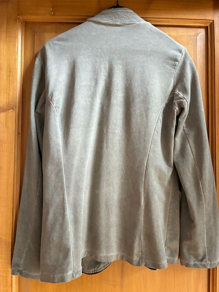 Veste gris / marron avec liseré argenté Taille : L / XL 95% coton. 5% elasthane