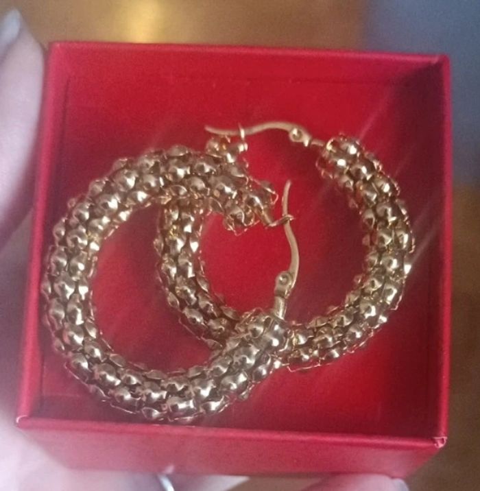 Magnifiques créoles fantaisies de couleur dorées, diamètre 3,5cm